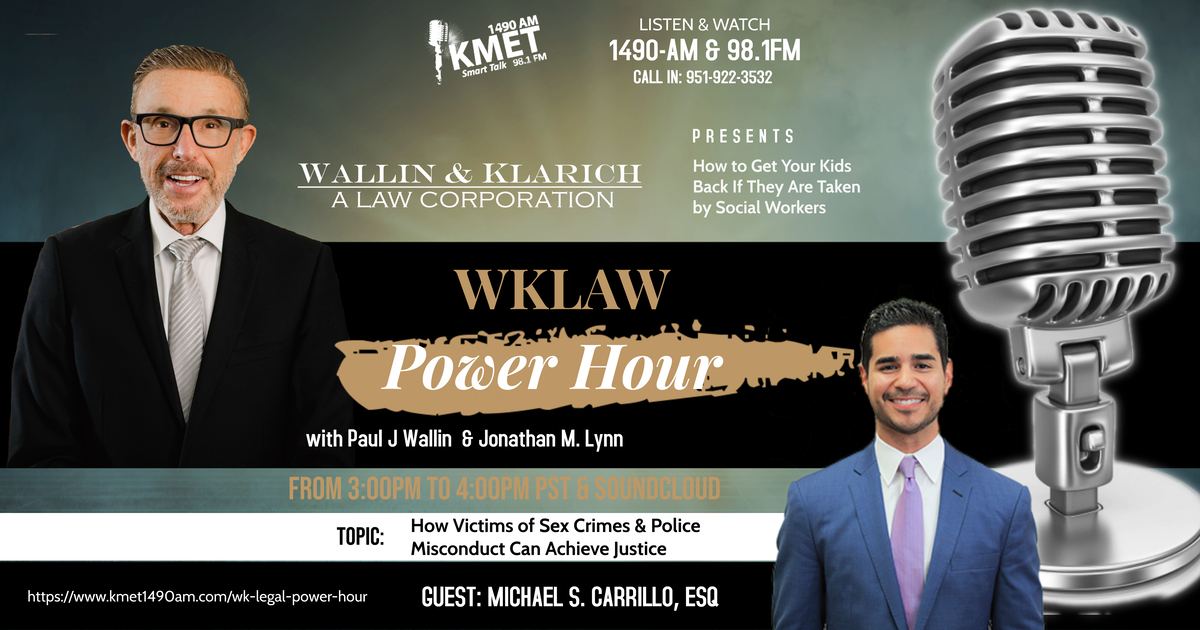WK LAW POWER HOUR Episode 2 | May 25, 2021 WK LAW POWER HOUR is a show that can take you from ZERO to HERO in legal knowledge in just 60 minutes. On this installment of WK LAW POWER HOUR, our Senior Partner, Paul J. Wallin, goes over very important topics such as how to regain custody of your child after they are taken by social workers and how victims…